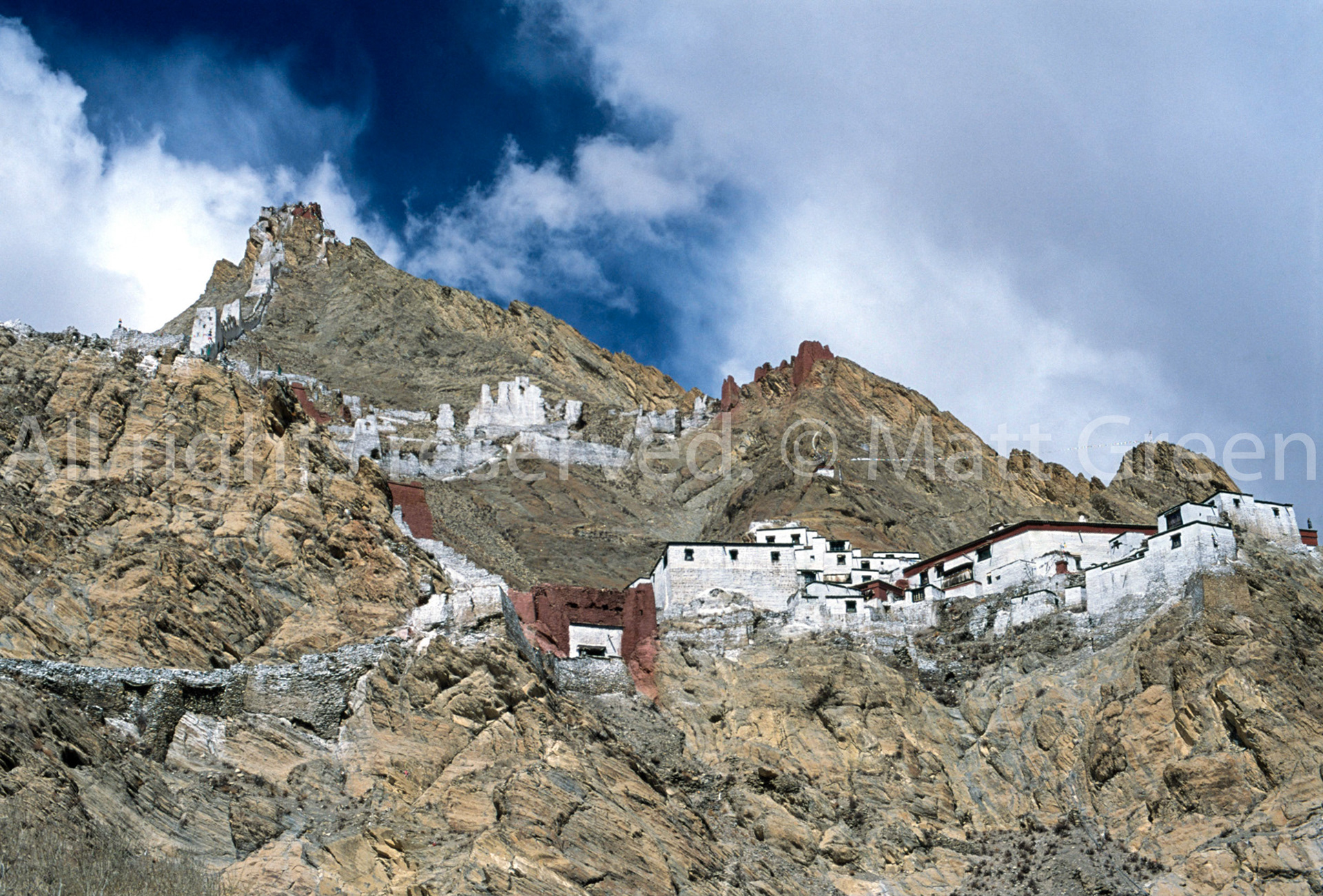Rombok Monastery, the highest monastery in the world at 5000m, originally built as a shrine to the highest mountain known to man. A small community of monks still study and pray at the monastery in quite harsh conditions. Mount Everest is just visible through the clouds 15 miles away in the distance, April 2007.